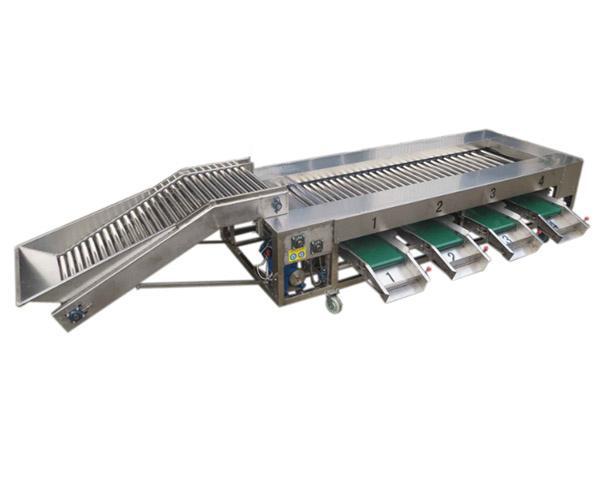 本設(shè)備是全不銹鋼果蔬分選機械,是由上果輸送機和滾杠式分選機組成;上果輸送機通過滾杠自動旋轉(zhuǎn)來達(dá)到均勻上料,滾杠式分級機根據(jù)果蔬直徑大小來分選;