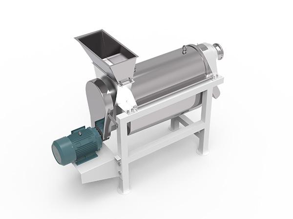 ★ 原料加入進料斗中,在螺旋的推進下受壓,其壓榨的汁液通過過濾網(wǎng)流入底部的盛汁器,而渣則通過螺旋與調(diào)壓頭的錐形部分之間形成的環(huán)狀空隙排出,調(diào)壓頭沿軸向的移動可調(diào)整空隙的大小。用手順時針(從設(shè)備的出渣槽向進料斗端看)轉(zhuǎn)動手輪軸承座時,調(diào)壓頭向左,空隙即縮小,反之則空隙變大。改變孔隙的大小,即調(diào)整排渣的阻力,即可改變出汁率。但如果孔隙過小,在強力擠壓下,部分渣的顆粒會和汁一起通過過濾網(wǎng)被擠出,盡管出汁率增加,但汁的質(zhì)量相對下降,因此孔隙的大小應(yīng)視用戶的具體工藝要求而定。